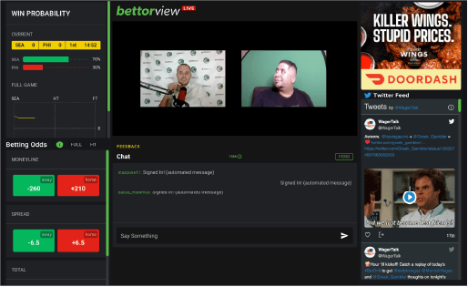 An interactive sports betting and video conferencing platform that increases fan engagement and is designed to complement in-home viewing of live sports with an emphasis on betting statistics.